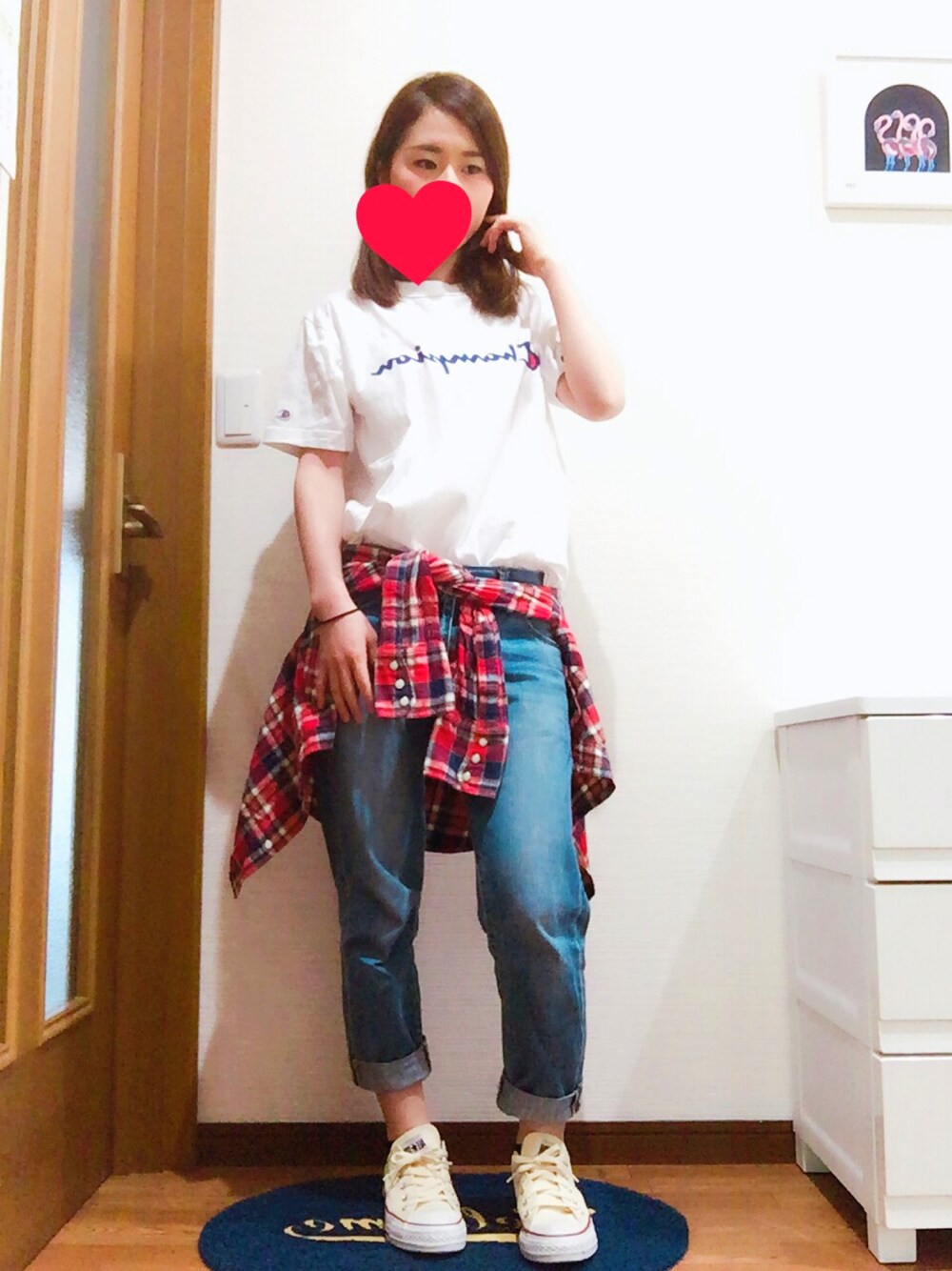 いつもいいね、セーブありがとうございます💕 今日はチャンピオンTシャツ🎵 可愛い💕 ちょっと肌寒いけど、もぉ半袖でもいいくらいになってきましたね🎵 嬉しいです💕