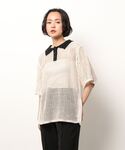 jug_miscereのニット/セーター「☆ トレンド感漂う。バイカラーメッシュ編みポロ 163565」を使ったコーディネート