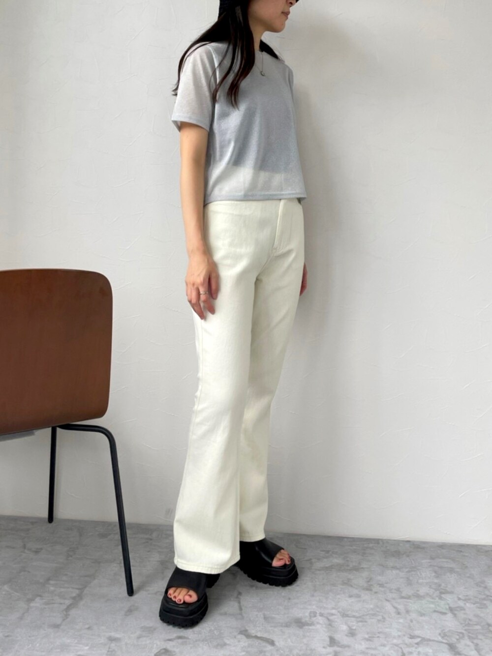 🟩Instagram:00miscere00 ♦︎ ラメTEE color:GY/BK/YE size:FREE ♦︎ セミフレアカラーパンツ color:IV/YE/PK size:FREE model:160cm