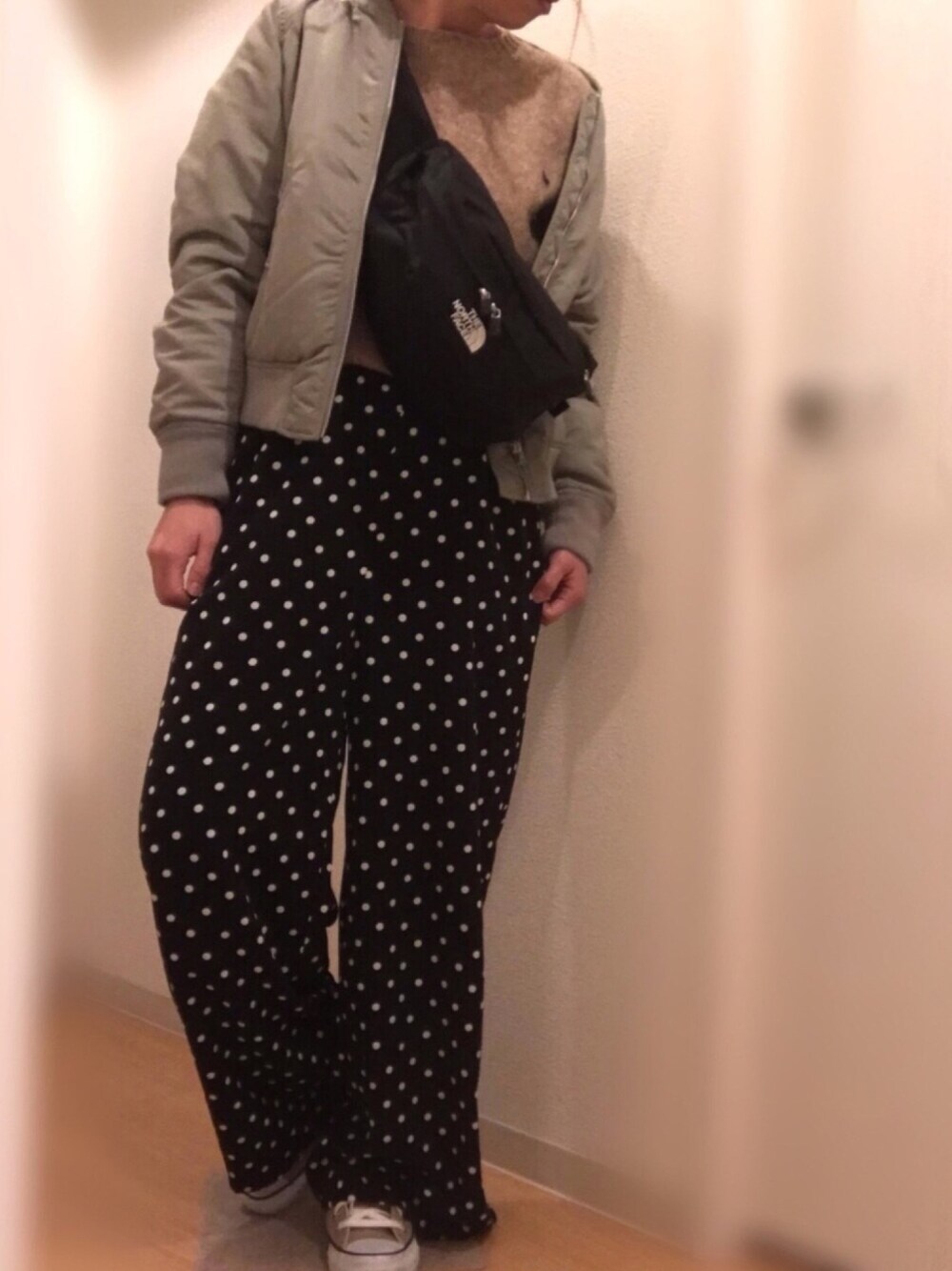 昨日の夜の女子会コーデ 冬逆戻り並みに寒かったのでMA1を着ました💦