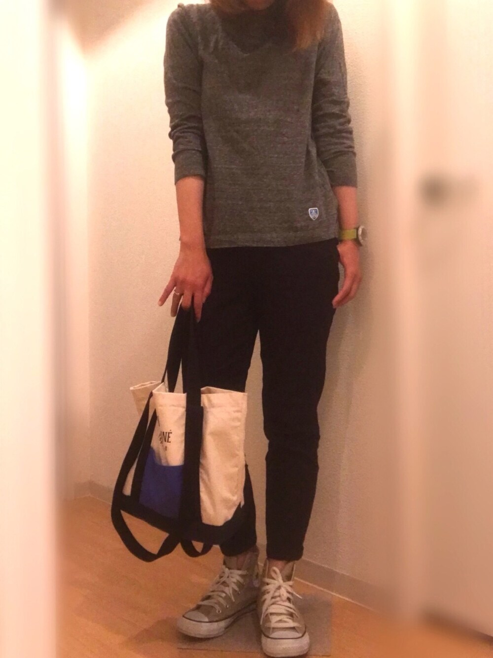 昨日のカジュアルコーデ 数年前に買ったBshopのパンツが形良く動きやすい👍
