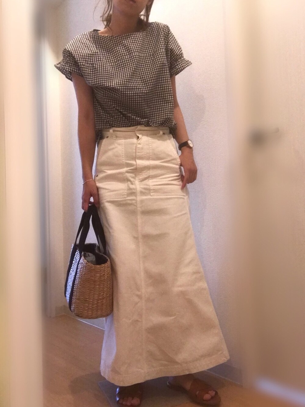mee☆のシャツ/ブラウス「≪WEARISTA ari☆さん着用≫ギンガムギャザースリーブブラウス◆」を使ったコーディネート