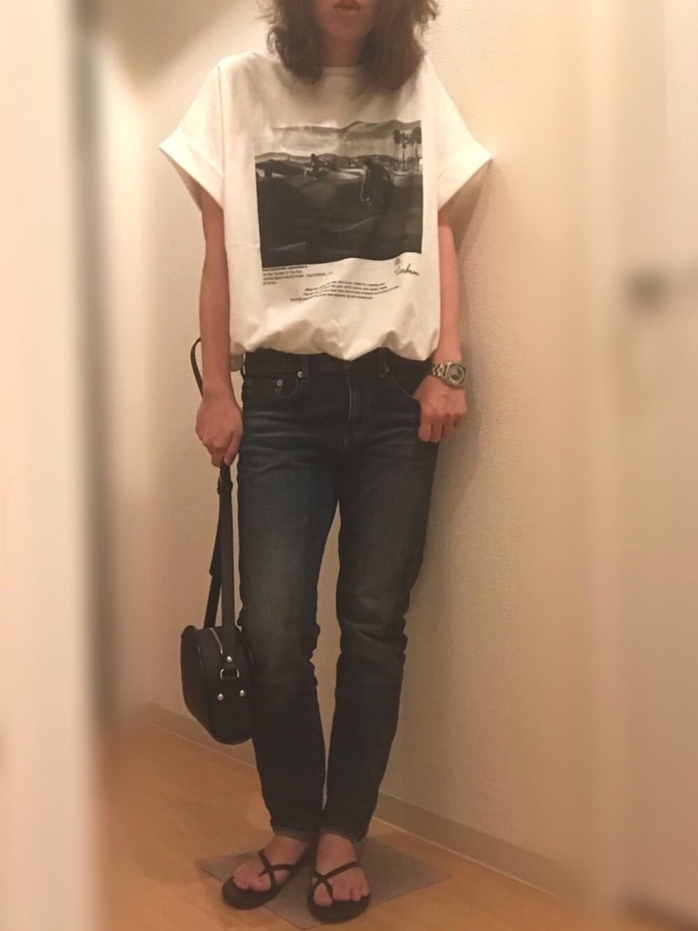フォトTとデニム 小物はブラックで😌