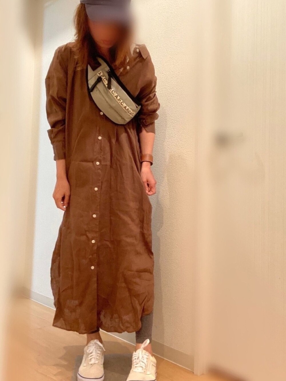 mee☆のワンピース「Herdmans/ハードマンズ リネンロングシャツワンピース(リネンワンピース)」を使ったコーディネート
