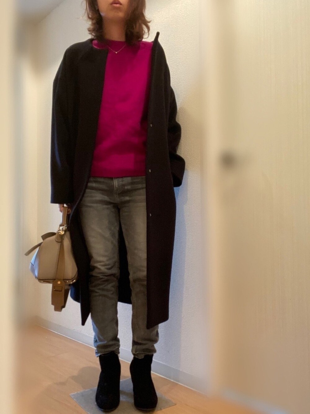 mee☆のステンカラーコート「カシミヤクルーネックコート」を使ったコーディネート