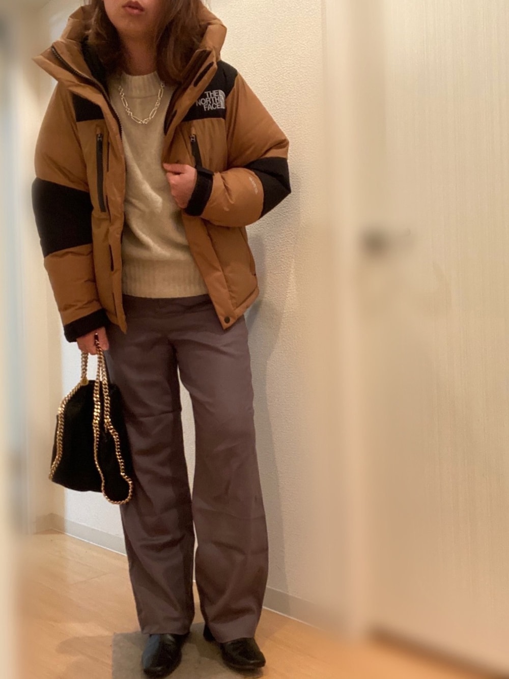 あの暖かさはどこへ…😭 バルトロはキレイめのワイドパンツとも相性💯です👍
