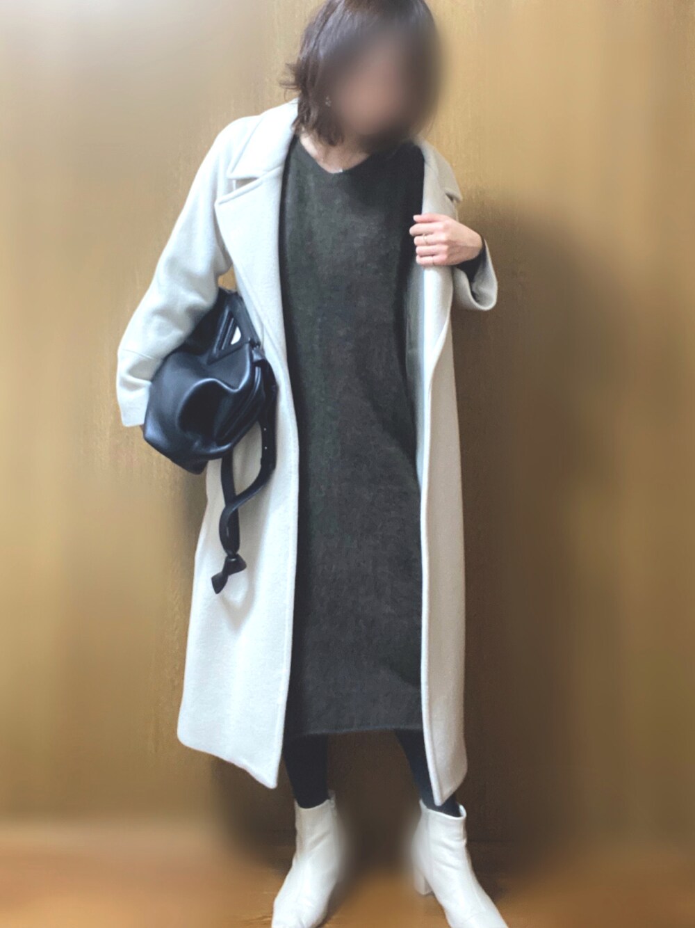 カーキ×ホワイト とてもあったかいニットワンピース😌 ニットワンピースなのに着膨れしないように作られていて、さすがDemi-Luxe BEAMS👏