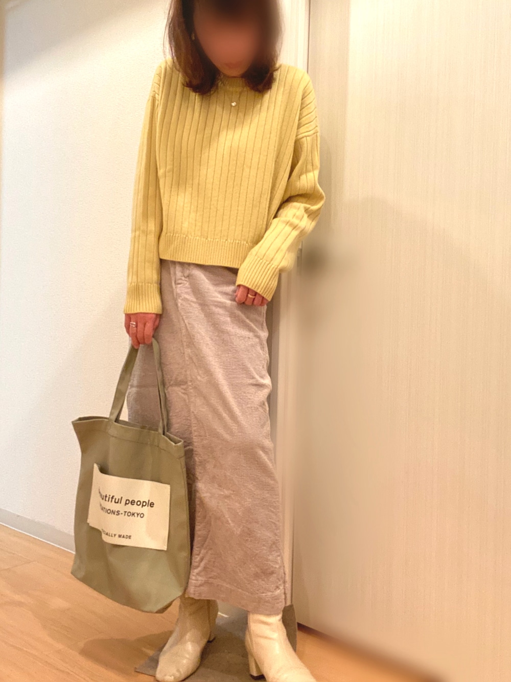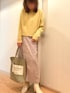 春色コーデ 着丈が短めなところ、手首周りのたぽっとしているところがお気に入りのニット😌