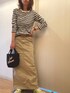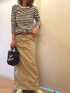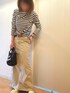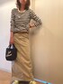 ボーダー×チノスカート サイズは34か36で迷いましたが、36の方がロング丈で腰回りもゆとりがあり、大人っぽく着られました! チノスカートなのに子どもっぽくならずにカジュアルに着られます。