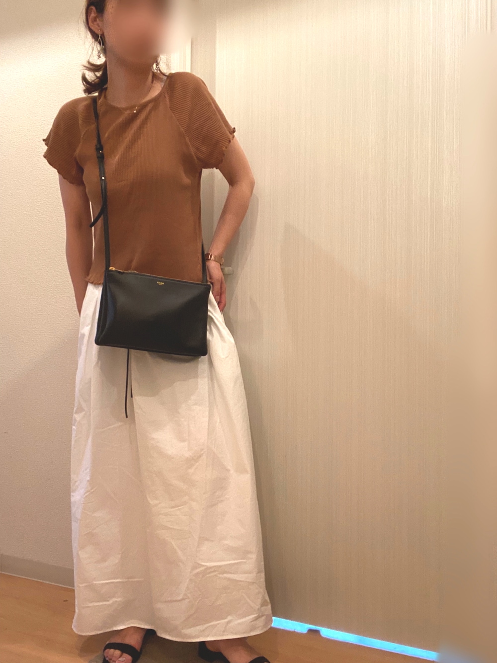 昨日のコーデ 着回しているトップスは腕周りと首周りが本当に涼しいデザイン☺️