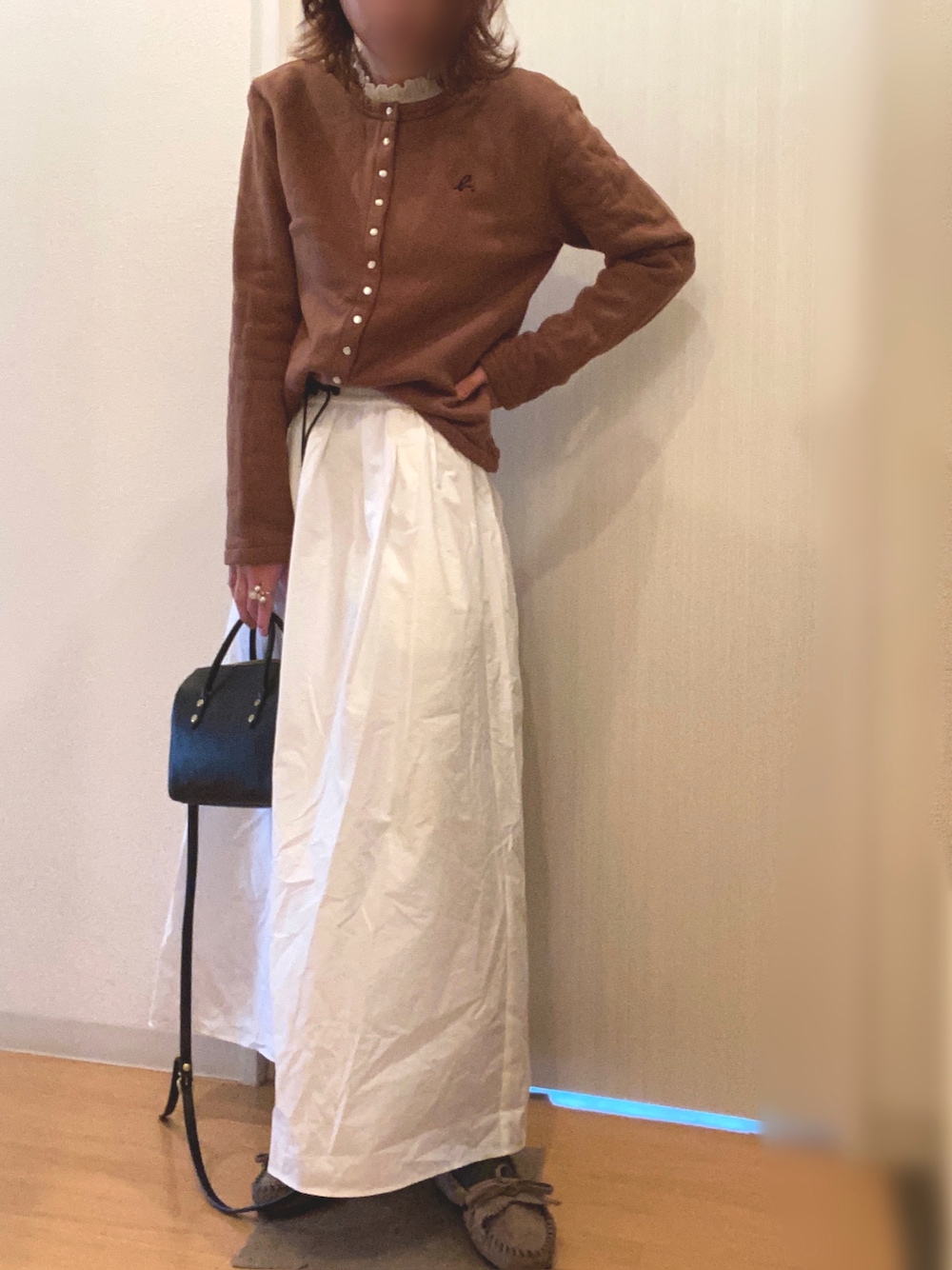 昨日のコーデ また寒かったので裏起毛のカーディガン😌