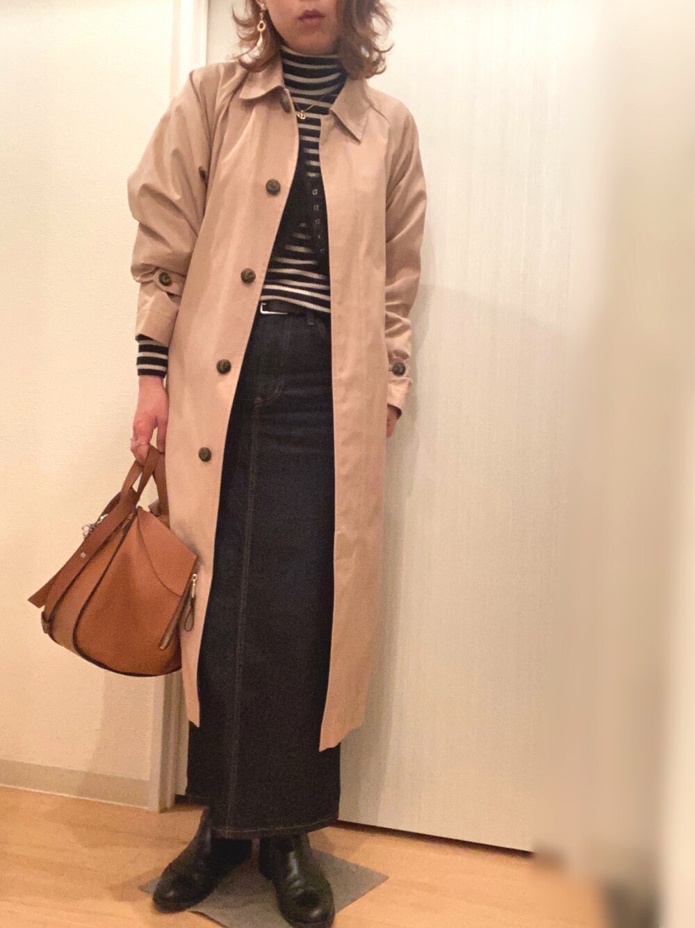 昨日のコーデ 冬並みに寒かったですが、中に着込んでアウターは春物に😅