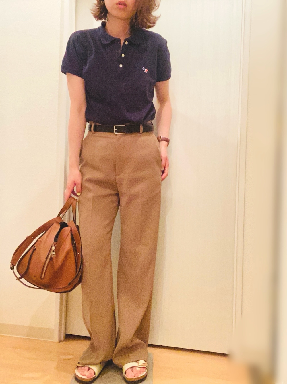 セールで買ったパンツが色と形完璧すぎる‼︎そして涼しいから快適😊 ビルケンのサンダルはエクリュ色にゴールドのビッグバックルが絶妙すぎる‼︎