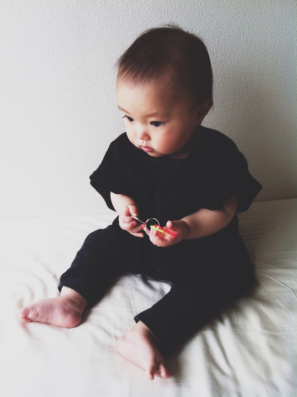 ホワイト系のTシャツ/カットソーを着用したキッズの秋コーディネートの1枚目の写真