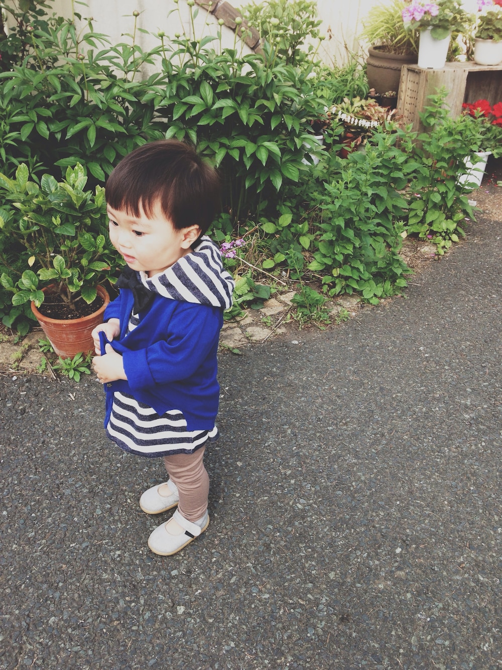 ホワイト系のTシャツ/カットソーを着用したキッズの秋コーディネートの1枚目の写真