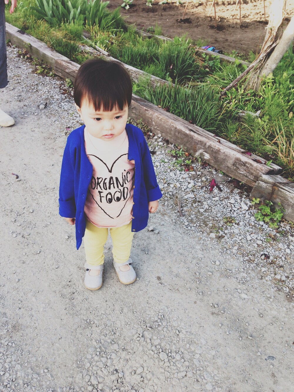 ホワイト系のTシャツ/カットソーを着用したキッズの秋コーディネートの1枚目の写真