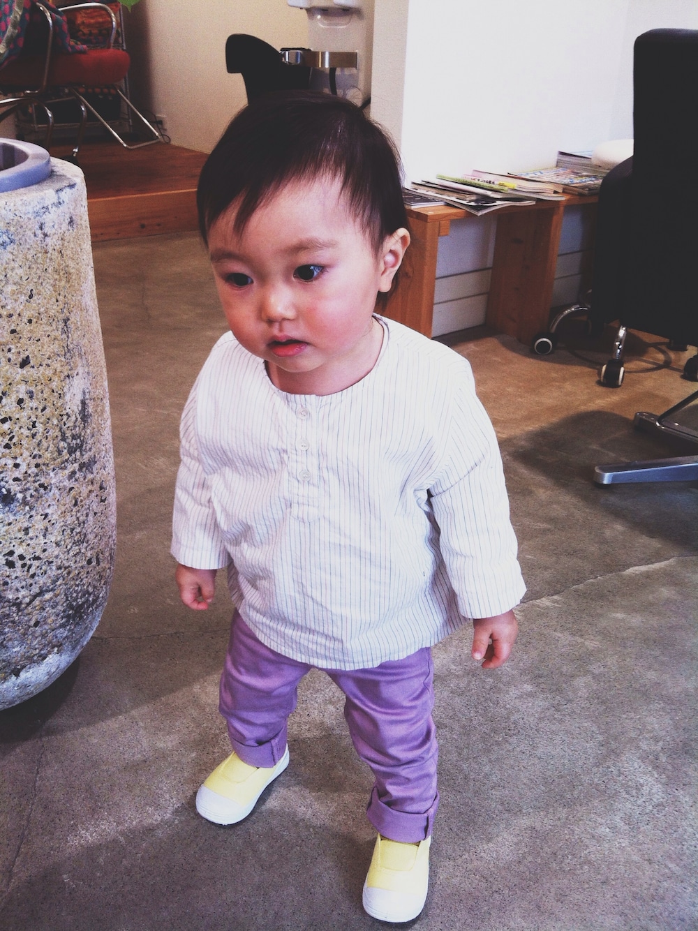 ホワイト系のTシャツ/カットソーを着用したキッズの秋コーディネートの1枚目の写真