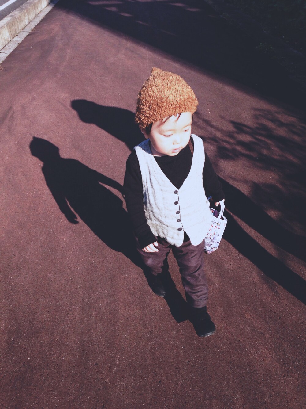 ホワイト系のTシャツ/カットソーを着用したキッズの秋コーディネートの1枚目の写真