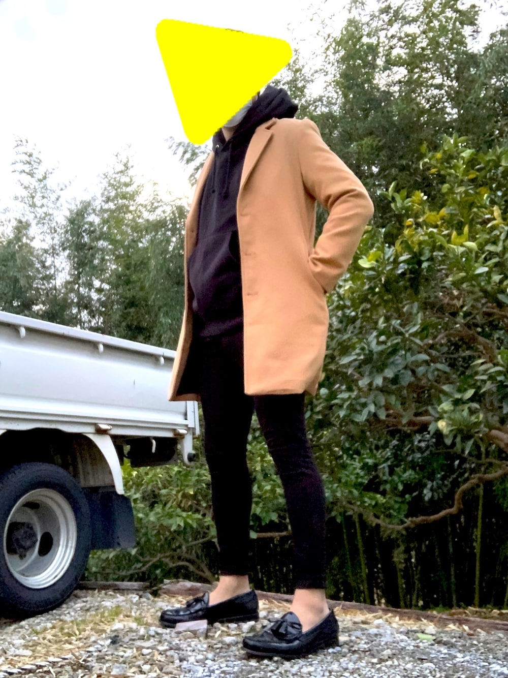 もうすぐ春ですね。 冬と春の中間くらい。 ピアス(フェイクだけど)をつけ始めてから何だか黒要素が強めに。 思いつきでコートと合わせてみたけど、思ったよりは悪くない。 いかがでしょうか?? ちなみに、トラックは僕のじゃありません。