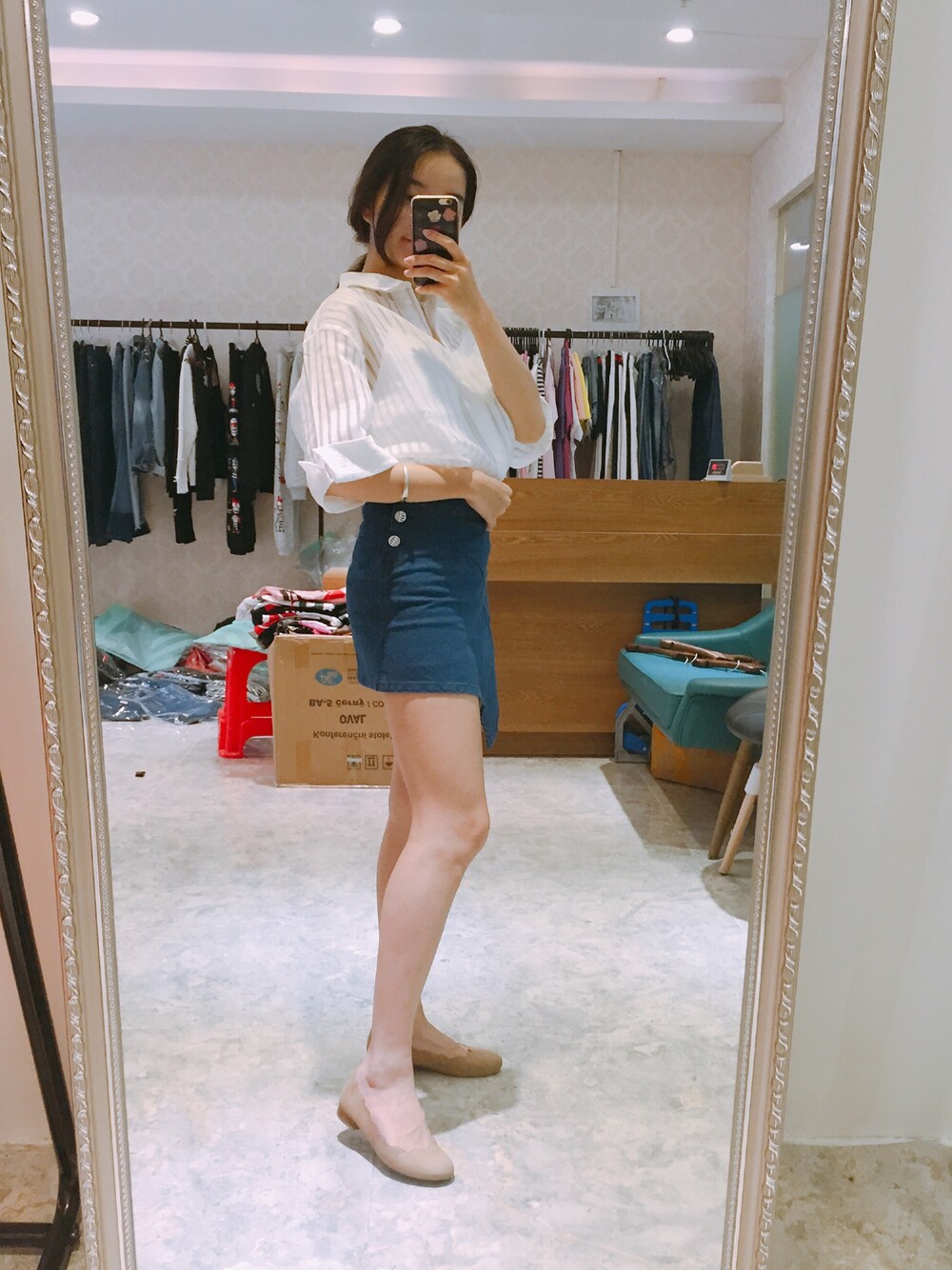 宽松版型条纹衬衣搭配牛仔裙 #夏日感觉#