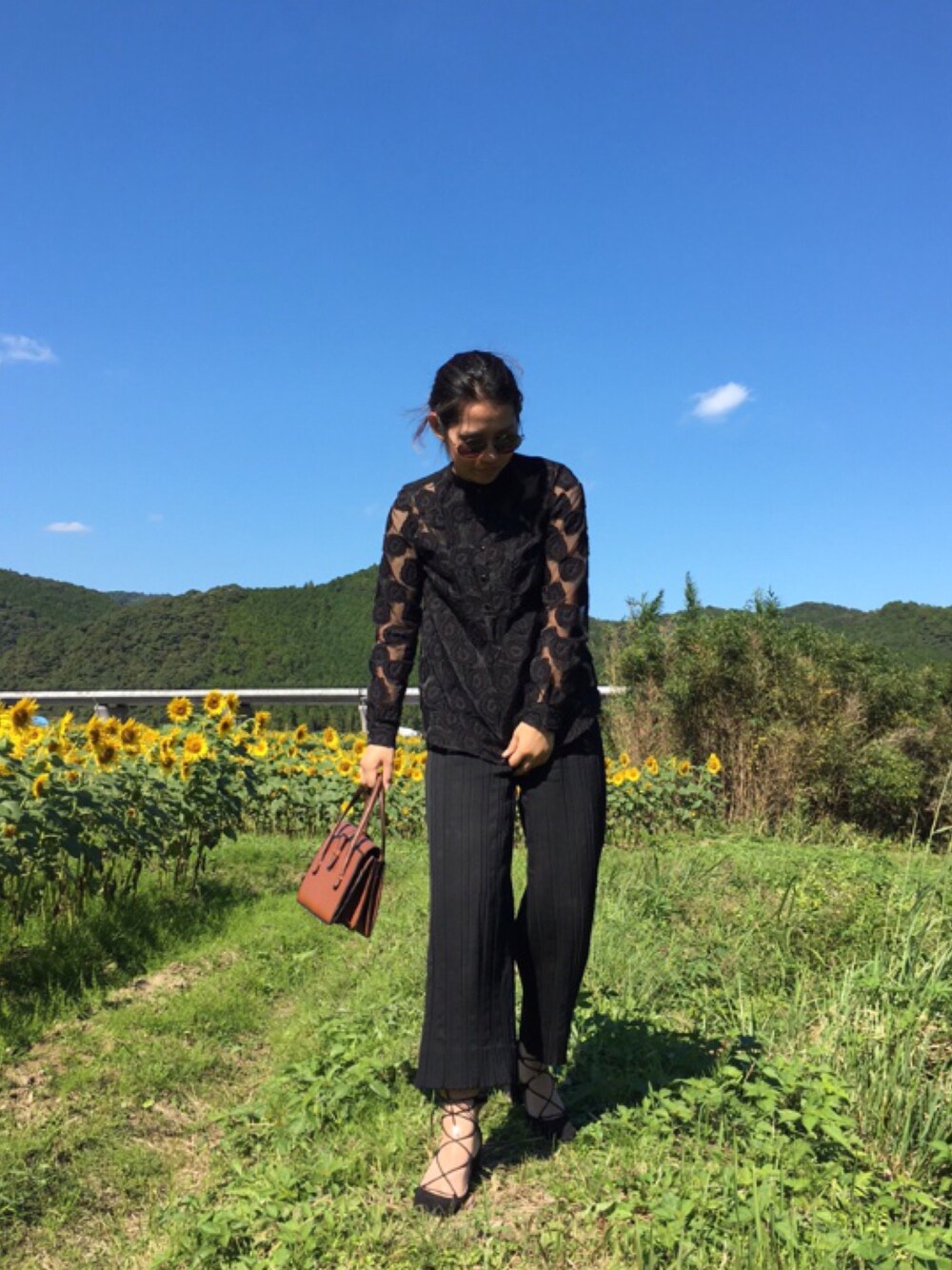 季節外れのひまわり畑。 昨日から田舎に帰ってます。 黒いせいなのか花柄のせいなのか 虫が何のためらいもなくとまるので 虫嫌いな私には中々過酷な地でした。笑