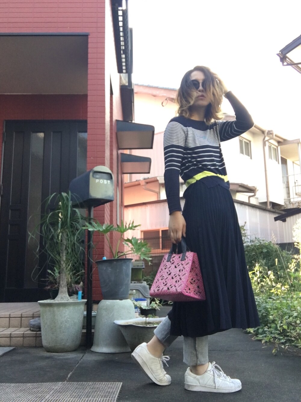 田舎に帰ると、必然的にカジュアル思考に。 でも差し色はほしいので イエローとピンクで若干ポップに◎