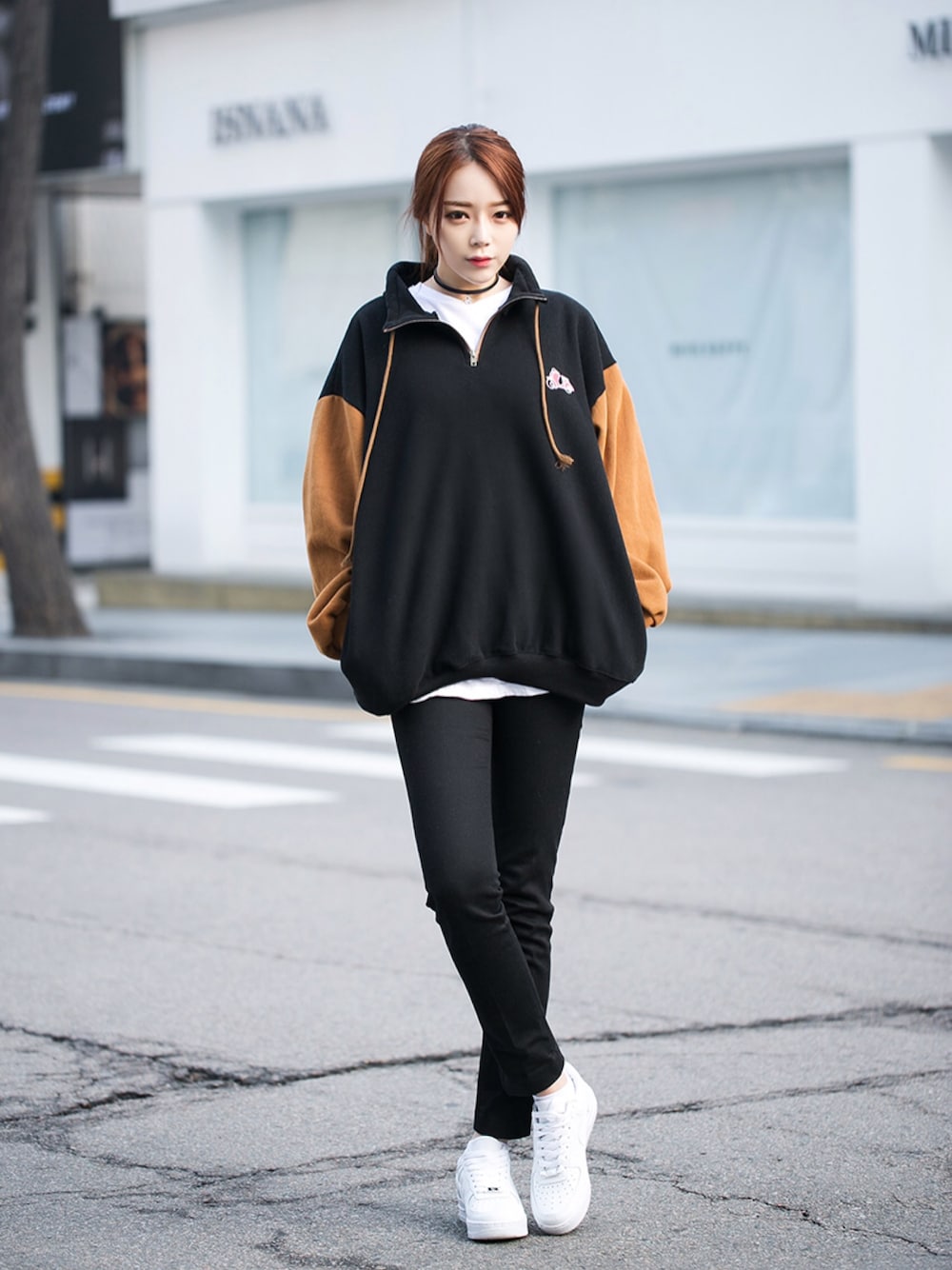 ホワイト系のスニーカーを着用したレディースの冬コーディネートの1枚目の写真