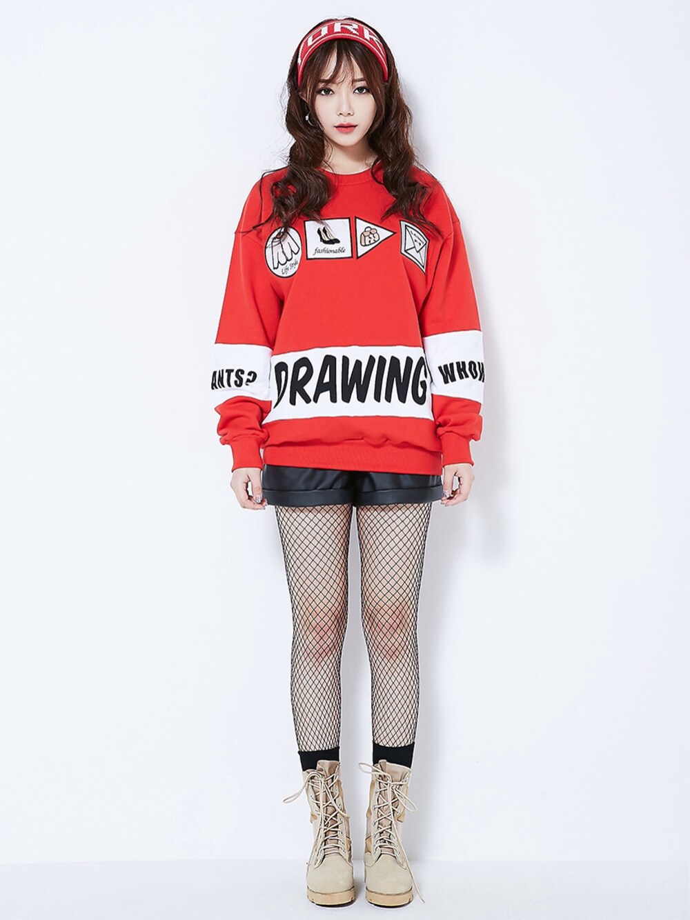 レッド系のTシャツ/カットソーを着用したレディースの春コーディネートの1枚目の写真