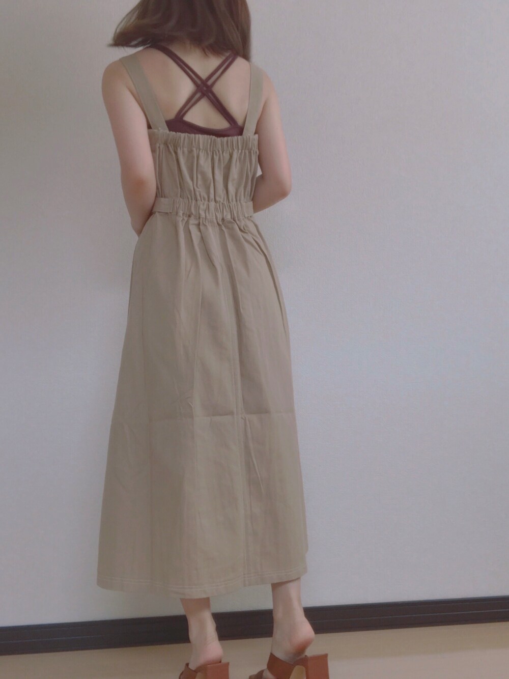 チノ素材でカジュアルなのに上品にキマるお気に入りの1枚。 バッククロスインナーと合わせると後ろ姿も可愛く決まります❤︎ 表はフロントボタンデザイン。 秋にはTシャツやブラウスにブーツやローファーを合わせて着たいな🥰