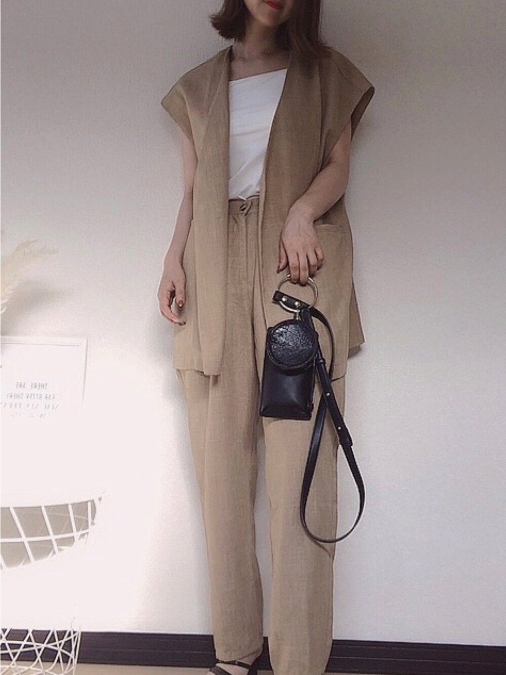 miのパンツ「MISTORE バックウエストゴムテーパードパンツ」を使ったコーディネート