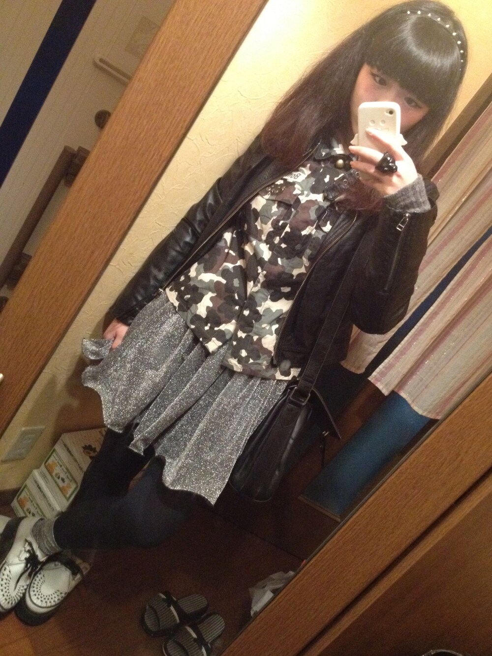 花柄迷彩がお気に入り(*'-'*) タイツはスモーキンググリーンで 靴下はラメラメ。