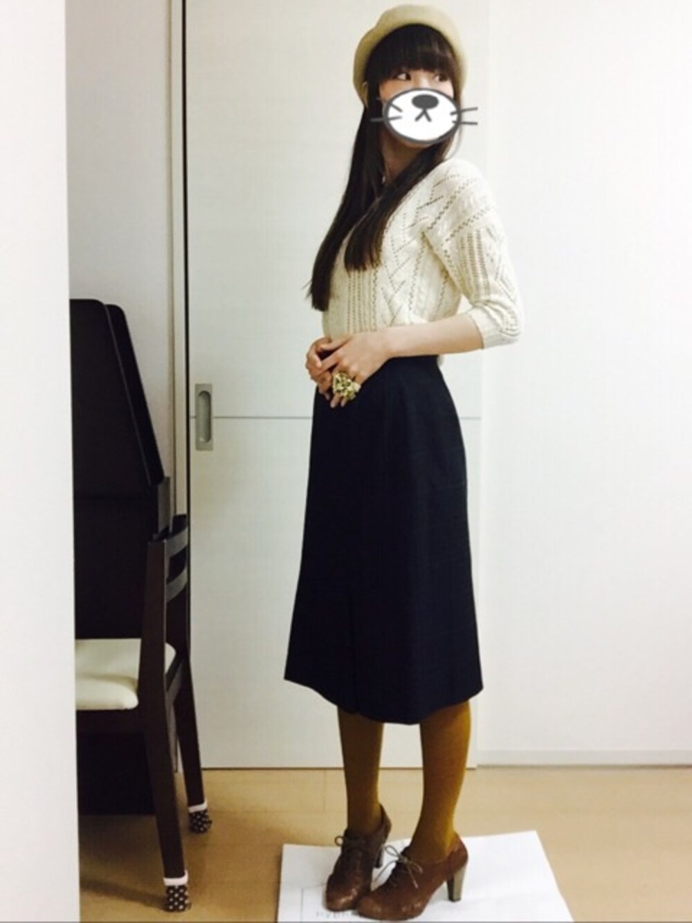 みすけのTシャツ/カットソー「7部丈編みカットソー」を使ったコーディネート