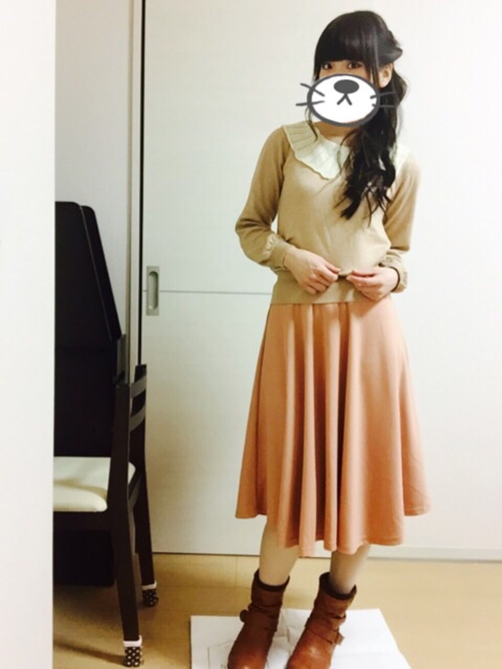 みすけのニット/セーター「デカ襟ニット」を使ったコーディネート