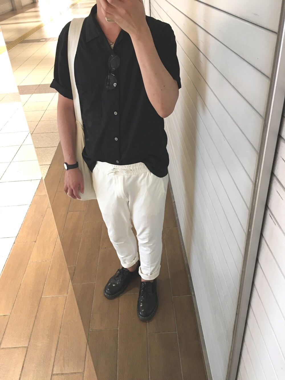 久々の投稿です。 最近オープンカラーをよく目にするので欲しいと思ってたら、UNIQLOさんに売ってたので即購入。 モノクロな感じにしました。