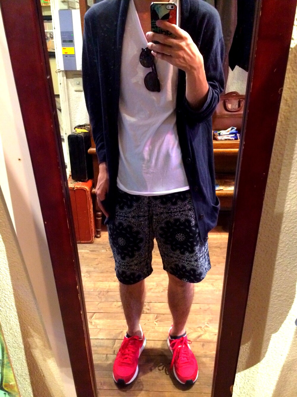 黒のカーディガンに白ティのシンプルコーデ 個人的に好きな黒のペイズリーのハーフパンツに 差し色にNIKEのビビッドな赤スニーカーにしました モノクロとか青とかが好きだけど どこか1つは暖色系を入れたい⊂((・x・))⊃