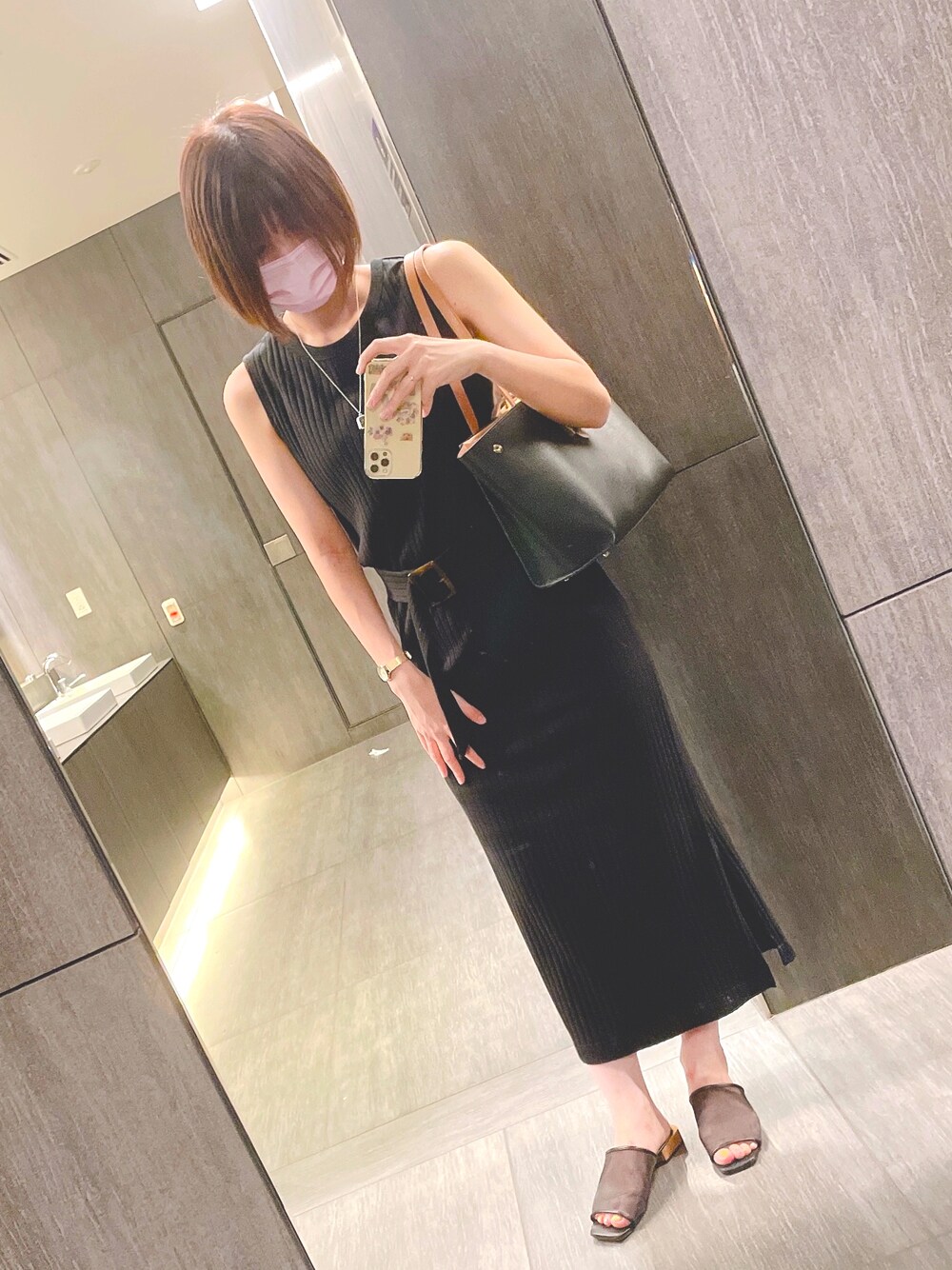 まだ夏なのでノースリーブワンピース着ました🖤 ラインが綺麗で下半身太いのが目立たなくて良きです(*´ `*) 1年半ぶりぐらいの投稿😂😂 服はたくさん載せたいのがあるのですが、全身を撮るのが面倒くさくて、、 あげるように頑張りたい、、