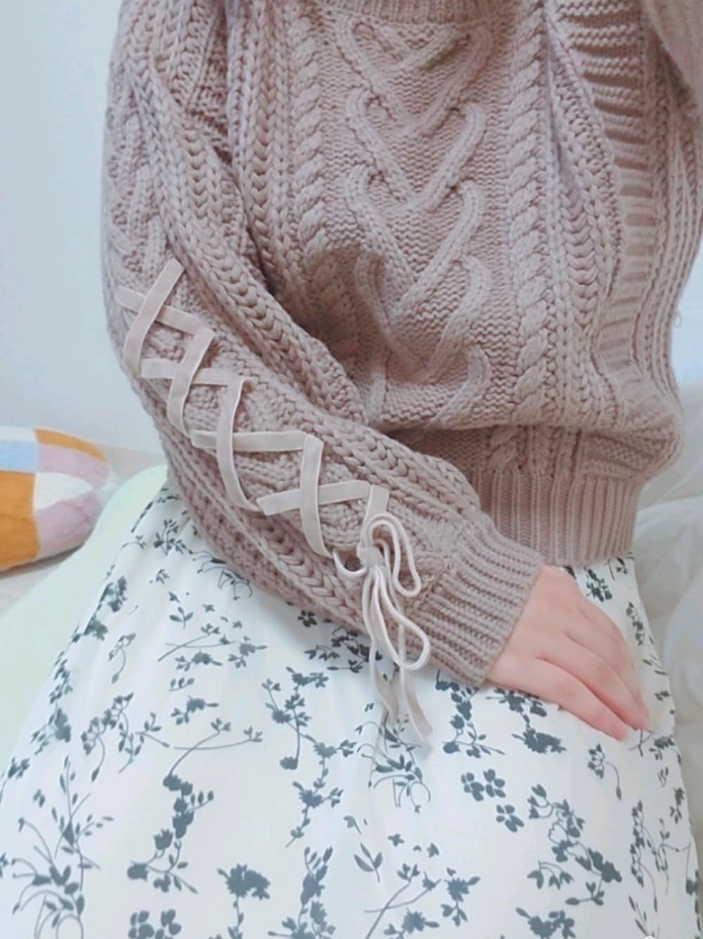 みたにのニット/セーター「ケーブル袖レースUPオフショル/ニット」を使ったコーディネート