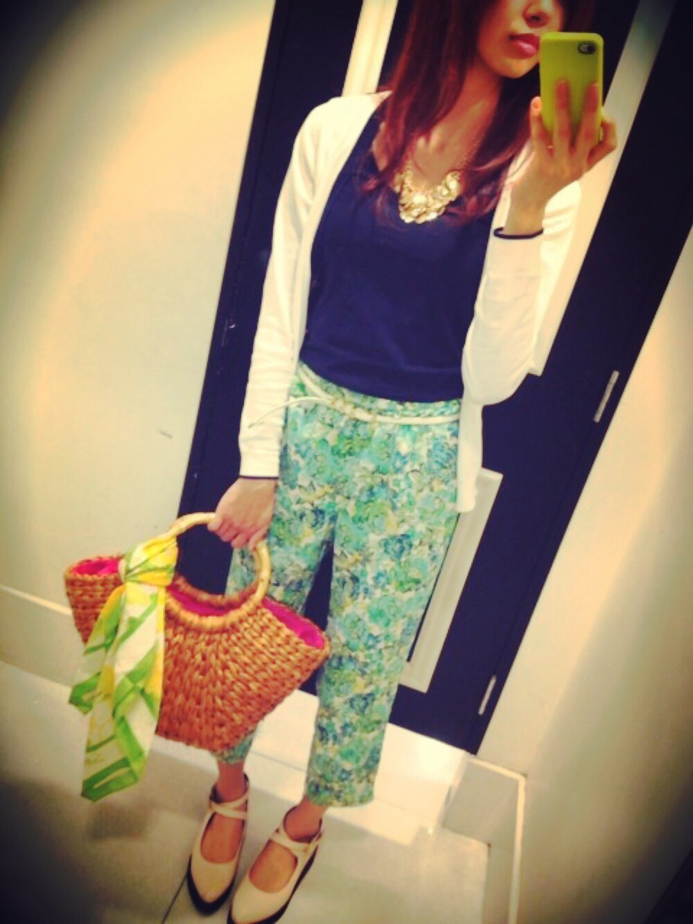 Tシャツ F21 カーディガン UNIQLO パンツ? パンプス Heather ネックレス H&M