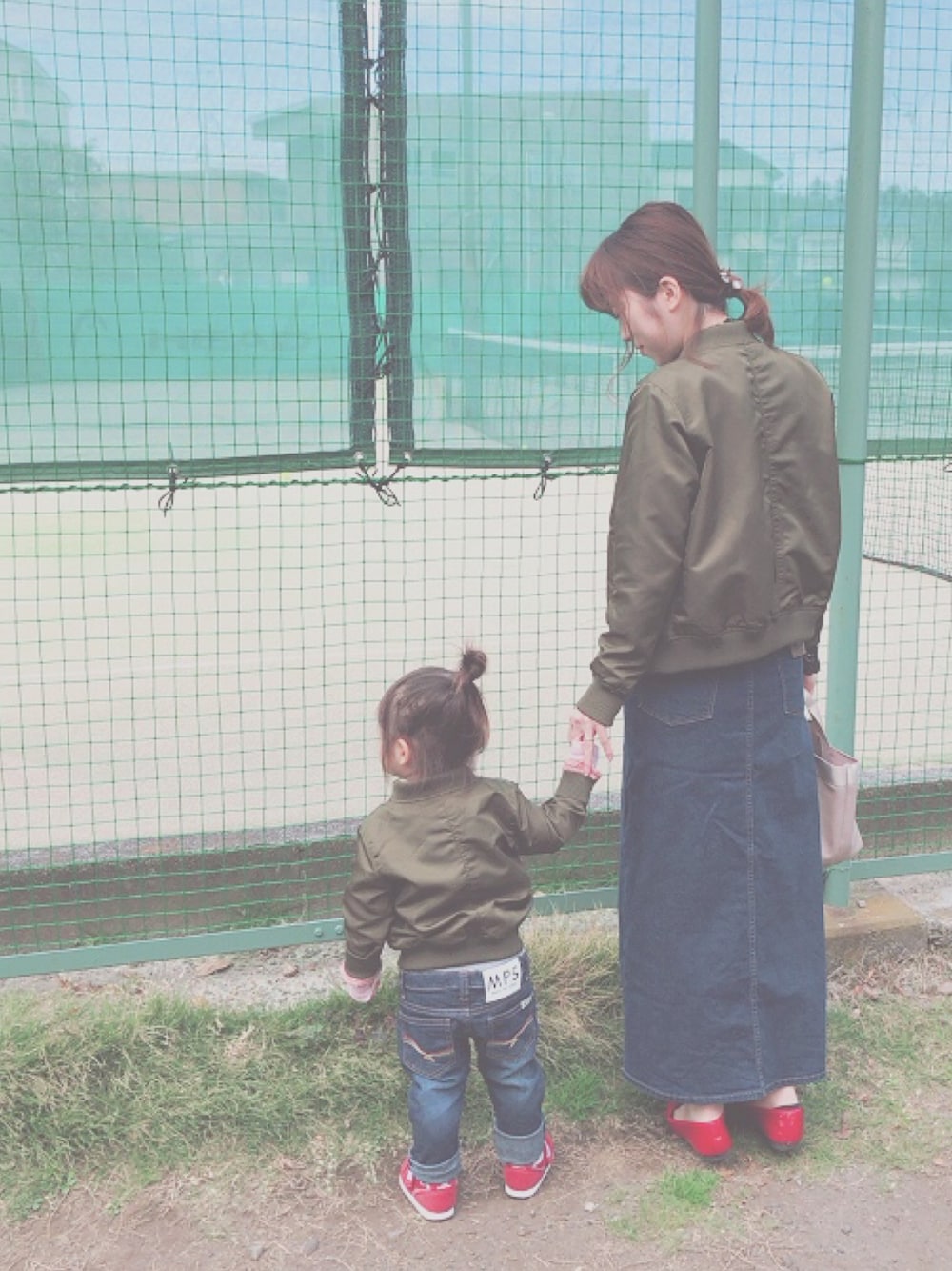 MA-1とデニムと赤 リンク♡ アウターは同じお店で買ったから素材も一緒でより嬉しい◎ ﹆karin NBB MA-1 カーキ 100サイズ Right on デニム 90サイズ NB 996 14センチ ﹆mama NBB MA-1 カーキ M Wrangler スカート ワンウォッシュ GP ポインテッドパンプス 赤