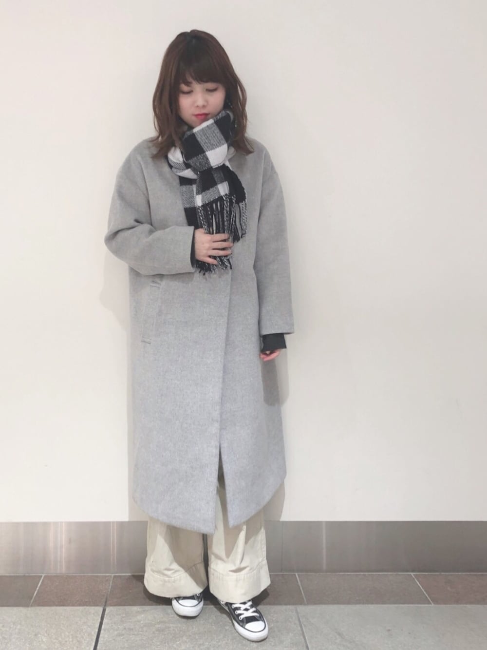 ぐーーーんと気温が下がった今日も、ウール混コートであたたかく◎ ストールも巻きやすいので、今年流行の巻き方も余裕です♡