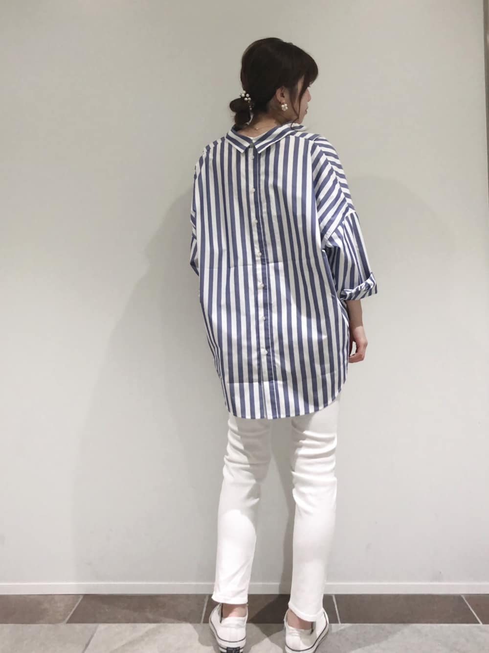 前回の投稿の、全身スタイル! 後ろ姿が特徴的なので抜き襟が簡単にできるのもポイント◎ 一気に涼しげになるのでオススメです!