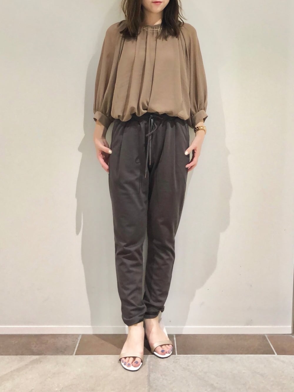 karin_mamaのシャツ/ブラウス「ラグランギャザー7分袖ブラウス*」を使ったコーディネート