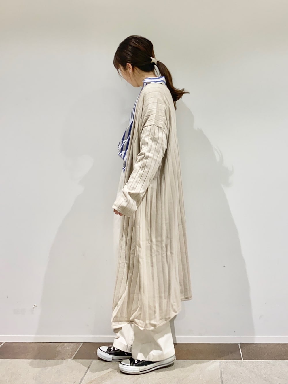 karin_mamaのカーディガン/ボレロ「針抜きリブロングニットニュアンスカーディガン*」を使ったコーディネート