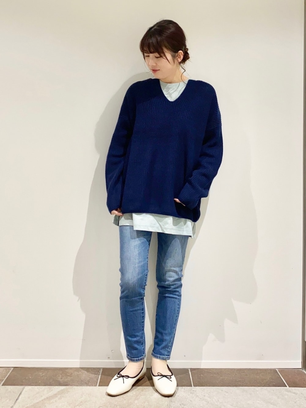 karin_mamaのニット/セーター「キーネック片畔ニットプルオーバー」を使ったコーディネート