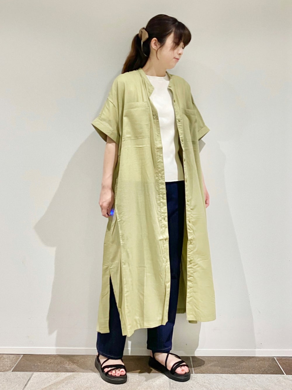karin_mamaのシャツワンピース「Wポケット前開きシャツワンピース」を使ったコーディネート