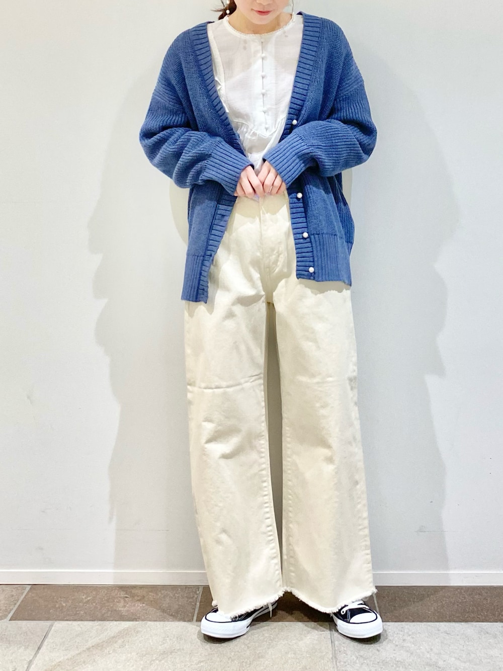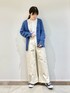 karin_mamaのカーディガン/ボレロ「パールボタン片畦ニットカーディガン」を使ったコーディネート