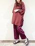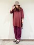 身長158センチ 【トップス】 普段着用サイズ:Mサイズ 今回:Lサイズ ボルドーでゆるゆるコーデ。 左サイドのみのスリットなので、Lサイズでも安心して着れるシルエットです。 【ボトムス】 普段着用サイズ:Mサイズ 今回:Lサイズ Lサイズが秋冬にもぴったりの丈感でした。 ジャガード生地ですが軽さもあり、暑い夏から着用可能です。