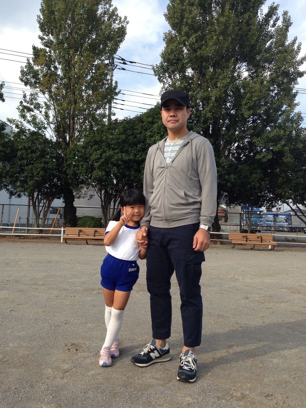 子供の運動会です。 何を着ていいのか 迷いましたが ユニクロのクロップドカーゴは 動きやすくとても良かったです。 スニーカーは NEW BALANCEを 履きたかったので満足です。
