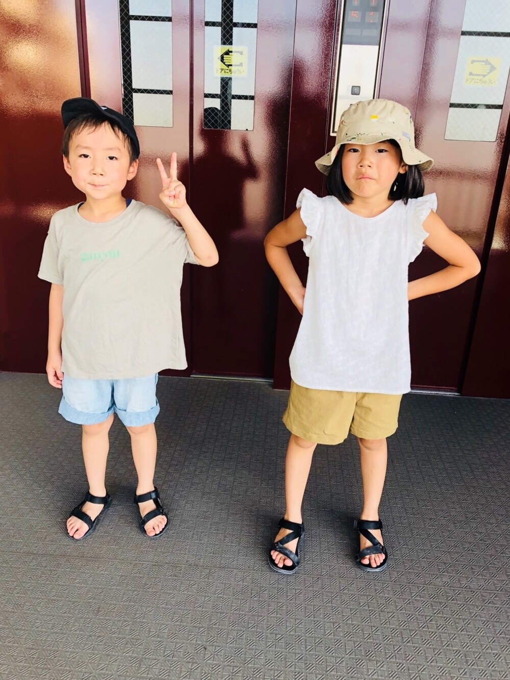 のぞいてくださってありがとうございまーす❤️ なんだこの変な距離感🤣 そしてなんだこの表情🤣🤣 見るからに暑そうな二人💨 やばいくらい暑くないですかーーー😱 ちょっと外に出るだけで溶けそう💦 これもまたやっと載せれたhokkorikoトップス❤️ かわいすぎるしー😍 これはまた大活躍の予感ー♬ そしてそしてついに買っちゃったバケハー✨ この生地に見覚えのある人はLUPINUS好きとみたー♪(´ε` )💕笑 サンダルフェス…毎日おんなじサンダルやけど入れてくださーい🙇♀️💦