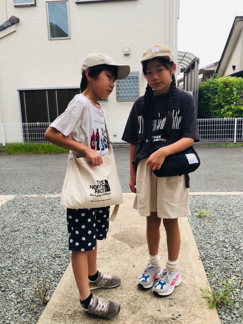 のぞいてくださってありがとうございまーす❤️ 今日はタグに乗れない日ー🍀 2人ともTシャツにハーパンに夏コーデです❤️ こういうのもやっぱかわいい😍💕 2人とも水筒入れてるのでおっきめバッグ🎵 そうたはノースの😆 あやかはファミマ×すみっこのやつです🎵 今日も暑そうだなー💨 みーんなお休み楽しく過ごせますようにー✨